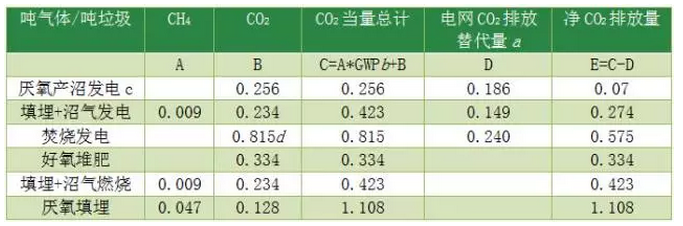 表二:不同生活垃圾處理方式的碳排放比較[2]