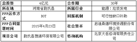 河南尉氏縣生活垃圾焚燒發(fā)電PPP項(xiàng)目