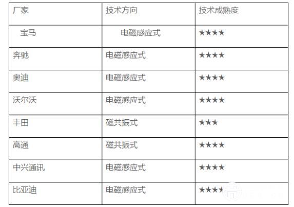 下表為國(guó)內(nèi)外廠家無(wú)線充電的技術(shù)方向: