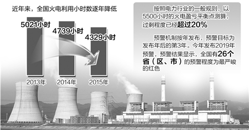 近年來,全國用電量增速逐年放緩,火電利用小時(shí)數(shù)逐年降低。2013年為5021小時(shí),2014年為4739小時(shí),2015年僅為4329小時(shí),同比下降410小時(shí)。同時(shí),煤電項(xiàng)目從納入國家發(fā)展規(guī)劃到建成投產(chǎn)需3至4年時(shí)間,存在一定慣性,導(dǎo)致近期煤電投產(chǎn)規(guī)模并未減少。