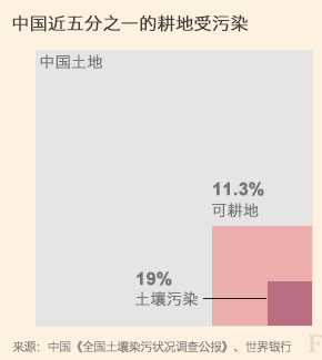 2005年到2013年,環(huán)境保護部和國土資源部以預(yù)算10億元人民幣,首次啟動全國土地污染現(xiàn)況調(diào)查。在調(diào)查取樣的630萬平方公里面積中,土壤污染超標率為16.1%,耕地土壤點位超標率為19.4%,整體情況“不容樂觀”。
