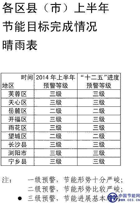 對照各區(qū)縣(市)年度節(jié)能目標(biāo)任務(wù),經(jīng)市統(tǒng)計局初步測算,上半年,岳麓區(qū)和望城區(qū)預(yù)警等級為二級,節(jié)能形勢比較嚴(yán)峻;芙蓉區(qū)、天心區(qū)、開福區(qū)、雨花區(qū)、長沙縣、瀏陽市、寧鄉(xiāng)縣預(yù)警等級為三級,節(jié)能進(jìn)展基本順利。與提前一年完成“十二五”節(jié)能目標(biāo)進(jìn)度要求相比較,岳麓區(qū)和望城區(qū)預(yù)警等級為二級;芙蓉區(qū)、天心區(qū)、開福區(qū)、雨花區(qū)、長沙縣、瀏陽市、寧鄉(xiāng)縣預(yù)警等級為三級。