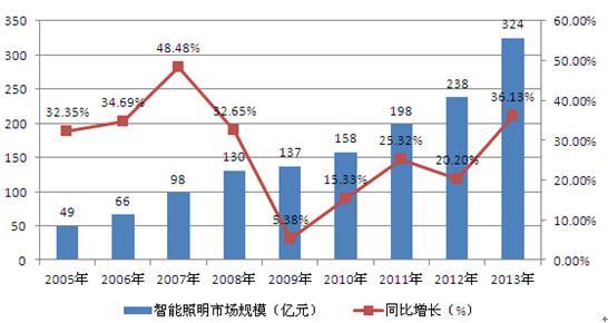 據(jù)CMSChina統(tǒng)計(jì)的數(shù)據(jù)顯示,在不考慮高附加值產(chǎn)品的基礎(chǔ)上,僅2014-2015兩年智能照明行業(yè)就將額外提供至少超過600億元人民幣的市場空間。
