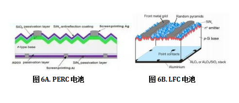 在晶體硅電池背面,目前的鋁背面場(chǎng)可以提供一定的場(chǎng)鈍化效果,但Al作為受主雜質(zhì)在硅材料內(nèi)部的固溶度較低,鋁背場(chǎng)提供的場(chǎng)鈍化效果比較弱。能夠顯著改善背面鈍化效果的是AlOx/SiNx鈍化薄膜,一方面AlOx薄膜內(nèi)部的固定負(fù)電荷密度較高,能夠提供較強(qiáng)的場(chǎng)鈍化能力;另一方面,在高溫?zé)Y(jié)過(guò)程中,AlOx與P型硅基片界面能夠形成一層1~2nm厚的SiOx層,起到介質(zhì)鈍化的作用。對(duì)于P型基底,AlOx/SiNx疊層薄膜能夠?qū)⑸贁?shù)載流子的表面復(fù)合速率降低到10cm/s。許多高效電池結(jié)構(gòu),如PERC、PERC、PERT、LFC等都是以背面AlOx/SiNx疊層鈍化薄膜為基礎(chǔ)。與常規(guī)晶體硅電池相比,PERC電池用AlOx/SiNx疊層薄膜替代鋁背場(chǎng),背面鍍完AlOx/SiNx后進(jìn)行局部的激光剝離出硅基片和背面鋁層的接觸窗口,背面的光生電流通過(guò)該窗口被背面鋁層收集。目前PERC電池技術(shù)已經(jīng)成為熱門(mén)的高效量產(chǎn)技術(shù),其轉(zhuǎn)換效率提升在0.5~0.8個(gè)百分點(diǎn)之間。
