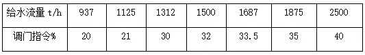 2) 除氧器上水調(diào)門邏輯:A凝結(jié)水泵變頻運行,B凝結(jié)水聯(lián)啟時,超弛關(guān)除氧器上水調(diào)門,其閥位指令為B凝結(jié)水泵聯(lián)啟時當時給水流量的函數(shù),為線性關(guān)系。