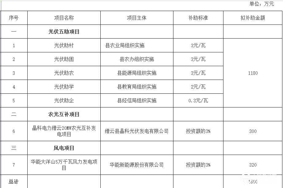 (一)加大資金扶持力度。各部門要積極爭取本系統(tǒng)上級資金,支持光伏發(fā)電項目發(fā)展。已爭取到的清潔能源示范縣補(bǔ)助資金,主要用于支持光伏發(fā)電項目發(fā)展。“光伏助村”、“光伏助困”、“光伏助農(nóng)”項目按照裝機(jī)規(guī)模3元/瓦補(bǔ)助;具體補(bǔ)助項目視資金統(tǒng)籌情況安排年度計劃。