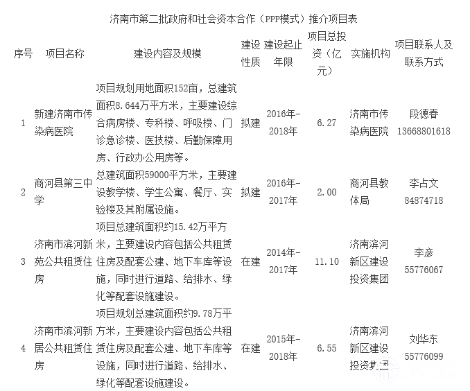 濟(jì)南發(fā)布第二批PPP推介項(xiàng)目:15個(gè)項(xiàng)目、總投資約102億元