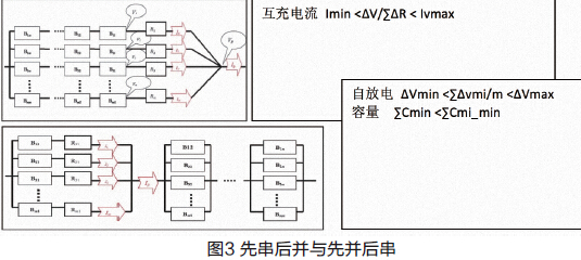 拿先串后并和先并后串來(lái)說(shuō),就有很大的不同。根據(jù)圖3可以看出,先串后并安全性、可靠性更好;而容量更小、自放電更大,對(duì)BMS要求更高。如果采用先并后串則反之。
