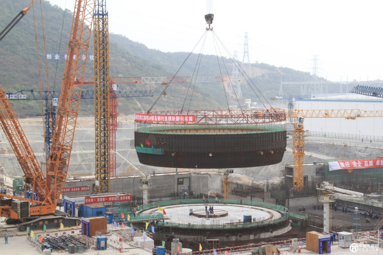 陽江核電5號機(jī)組核島鋼襯里模塊正在吊裝