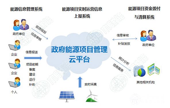 木聯(lián)能政府能源項目管理云平臺包括能源信息管理系統(tǒng)、能源項目實時運營信息上報系統(tǒng)及能源項目資金撥付與清算系統(tǒng)三個子系統(tǒng)。云平臺以可再生能源管理為基礎,可納入煤、油、氣的管理,滿足省、市、縣(區(qū))能源規(guī)劃、項目管理、補貼撥付與清算、統(tǒng)計分析預測等能源管理需求,同時也可作為政府對公眾提供能源項目管理服務的平臺。