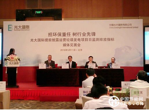 2016年5月11日,光大國際在京召開新聞發(fā)布會,提前披露運營垃圾發(fā)電項目日監(jiān)測排放指標。