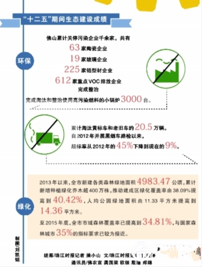 “十三五”時期,佛山將以建設(shè)生態(tài)環(huán)境修復(fù)示范市為主抓手,以改革環(huán)境治理制度為突破口,實行最嚴格的環(huán)境保護制度,建設(shè)政府、企業(yè)、社會共治的環(huán)境治理體系,共建天藍、地綠、水凈的美好家園。