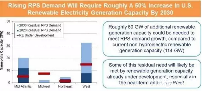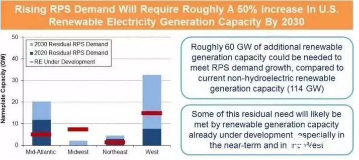 ?至2030年,可再生能源配額制需求將增加60GW的可再生能源發(fā)電量,大約增加為目前非水可再生能源發(fā)電量的50%(2015年為114)。