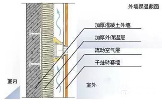 外保溫的形式可有效形成建筑保溫系統(tǒng),達(dá)到較好的保溫效果,減少熱橋的產(chǎn)生,其次保溫層與外飾面之間的空氣層可形成有效的自然通風(fēng),以降低空調(diào)負(fù)荷節(jié)約能耗并排除潮氣保護(hù)保溫材料,最后,外飾面有掛件固定,非粘接,無墜落傷人危險(xiǎn)。