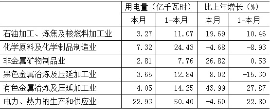 今年以來,我省用電量大幅提高,尤其是工業(yè)用電量增長較快,29個工業(yè)行業(yè)中19個行業(yè)用電量同比增長,其中增速超過10%的行業(yè)有9個,六大高耗能行業(yè)中,石油加工、煉焦及核燃料加工業(yè)、有色金屬冶煉及壓延加工業(yè)、電力、熱力的生產(chǎn)和供應業(yè)用電量增速保持較快增長。