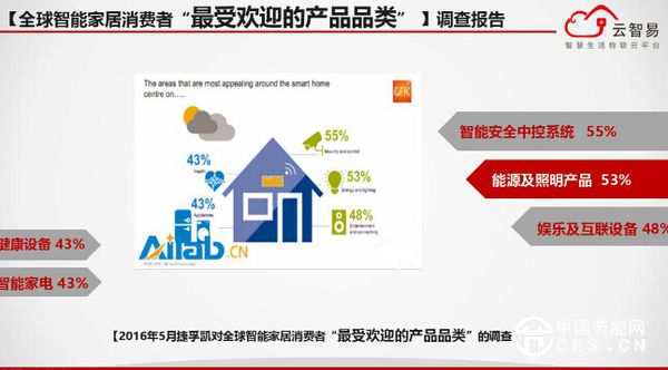 今年五月,捷孚凱對(duì)全球智能家居消費(fèi)者“最受歡迎的產(chǎn)品品類”的調(diào)查報(bào)告指出智能家居領(lǐng)域的一大特征便是品類豐富。其中55%的受訪者表示對(duì)智能安全中控系統(tǒng)最感興趣,其次便是能源和照明產(chǎn)品,53%的受訪者對(duì)此非常感興趣,因?yàn)橹悄芑芾砟茉吹囊淮筇卣骶褪歉?jié)能,它還能帶來(lái)的新型體驗(yàn)是更方便,也更舒適。