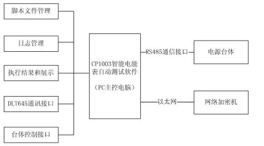 這套軟件使用是必須與多功能自動測試臺體配合才能使用。這種臺體需要具有以下的功能:三相電壓、電流可任意調(diào)節(jié)大小;相角可任意調(diào)節(jié);脈沖常數(shù)可以任意設(shè)置;頻率可任意調(diào)節(jié);臺體具有多功能輸出檢測裝置;臺體能檢測脈沖信號;臺體能檢測時鐘信號;臺體能檢測報警、跳閘信號。臺體的所有操作都可以通過串口命令方式實現(xiàn)。這樣可以在腳本中控制臺體升降源,并讀取臺體標準表和誤差的數(shù)據(jù)。臺體提供RS485擴展通信接口與計算機相連。