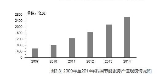 圖2.32009年至2014年我國(guó)節(jié)能服務(wù)產(chǎn)值規(guī)模情況[5]