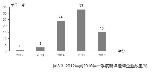 圖3.32012年到2016年一季度新增掛牌企業(yè)數(shù)量[8]