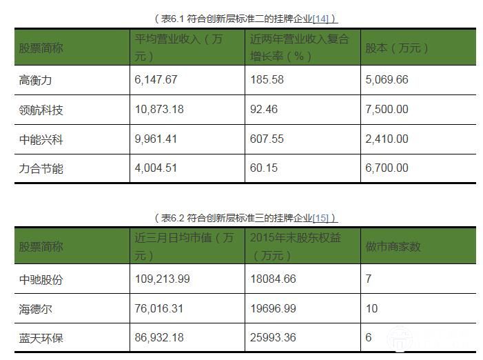 (表6.1符合創(chuàng)新層標(biāo)準(zhǔn)二的掛牌企業(yè)[14])