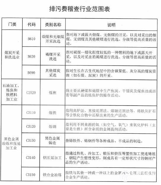 據(jù)介紹,2015年度鋼鐵行業(yè)燒結(jié)、球團、焦化、煉鐵、煉鋼、軋鋼過程中排放的二氧化硫、氮氧化物、粉塵、煙塵等污染物排污費征收,煤炭行業(yè)煤炭開采和洗選以及焦化過程中排放的二氧化硫、氮氧化物、粉塵、煙塵等污染物排污費征收情況是本次稽查重點。如本行政區(qū)域內(nèi)沒有上述企業(yè)的,可結(jié)合本行政區(qū)域監(jiān)管重點選擇其他行業(yè)開展排污費征收稽查。