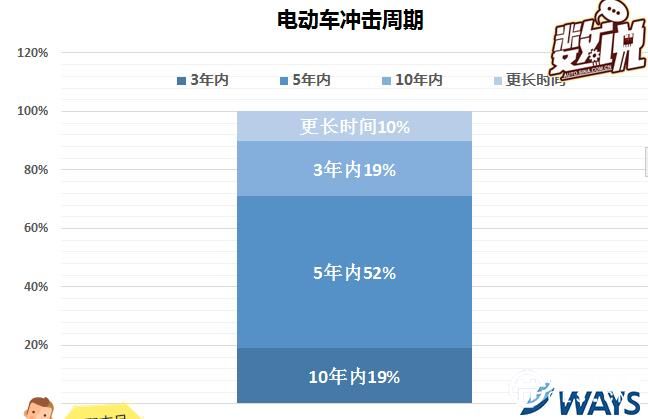 而針對電動車引發(fā)行業(yè)洗牌會在多久顯現(xiàn),超5成老總認為將在5年內顯現(xiàn)。