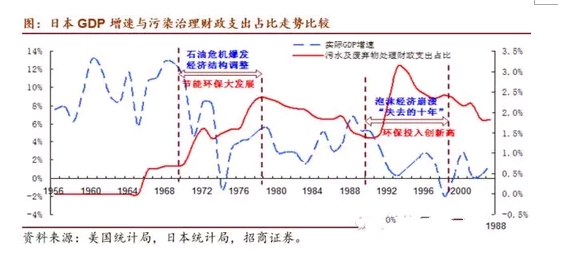 第二張PPT我們看到一個什么圖呢?這張是日本的圖,很明顯,看到日本在70年代GDP開始下滑的第一階段,環(huán)保投資在大幅度提升。然后,GDP平滑在4%,并在90年代進(jìn)入下降的第二階段,環(huán)保投資同期再大幅提升,這是兩個非常明顯的階段。中國目前就是處于第一階段,未來肯定還有第二階段,就是GDP從4~5%再降到1~2%的這個階段,環(huán)保投資也還會再提升一次,這是一個歷史 規(guī)律,為什么會這樣呢。因為環(huán)保是實體,還具有滯后屬性。在所有的工業(yè)企業(yè)不能再支撐GDP的時候,環(huán)保在這個時候會突然出現(xiàn),會貢獻(xiàn)出GDP。我們說叫環(huán)保也好,叫PPP也好,叫市政環(huán)境綜合治理也好。具體指什么,指海綿城市、指黑臭河治理、指管廊城市,都是幾萬億,所以幾個合在一起的話呢,考慮到連帶效應(yīng)至少應(yīng)該是十萬億以上的GDP會貢獻(xiàn)得出來,會支撐整個中國的一個GDP的建設(shè)。所以這就是為什么說環(huán)保它會救中國。