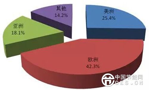 歐洲是全球最大的城市供熱市場,2015年歐洲城市供熱市場占全球的42.3%,美洲占24.4%,亞洲占18.1%。