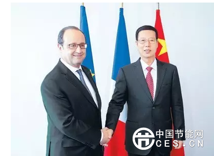 中國國家主席習近平特使、國務院副總理張高麗在紐約會見出席《巴黎協(xié)定》高級別簽署儀式的法國總統(tǒng)奧朗德。