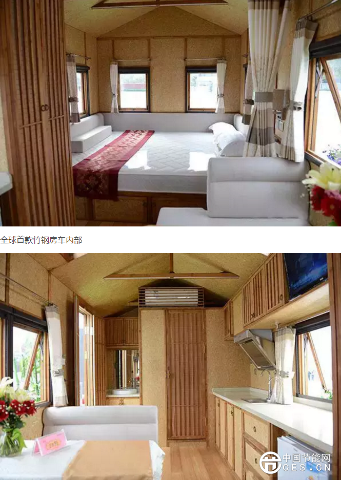隨后,特種車事業(yè)部工程師李兆兵對房車進行了整體介紹,據了解,此款房車中通客車具有獨家專利。全部材料采用高性能竹基纖維復合材料(俗稱竹鋼,是采用慈竹等天然竹材經高溫高壓處理的成材)和高強度麥秸板(是以麥秸為原料,經高溫高壓處理而成的材料)等環(huán)保材料加工而成的。用上述材料制造而成的營地房車產品具備色澤自然、氣味溫馨,無任何有害氣味釋放,材料強度和防腐性均滿足戶外車輛的使用要求,且制造與加工性能難度不高。因此應用竹鋼及麥秸板的營地房車在環(huán)保性能和加工成本等方面具有絕對優(yōu)勢。該產品在外形設計上借鑒古建筑設計元素,采用仿古房屋外型:高屋脊、魚鱗瓦,配上竹鋼的棕黃自然原色,能與營地中的自然景色完美溶合一體,提升游客旅游與生活的樂趣。內裝細節(jié)造型上,采用古銅色門窗拉環(huán)、精雕細琢的木質門梢,無處不散發(fā)著復古的氣息。在車輛設施方面:配備密碼門鎖、24小時安保監(jiān)控系統(tǒng);內部空間整體劃分為休息區(qū)、娛樂休閑區(qū)、廚房區(qū)、衛(wèi)浴區(qū)等四個部分,配置加寬雙人大床、衣柜、床頭柜、卡座(可折疊成床)、灶臺、吊柜、抽屜、鞋柜、干濕分離衛(wèi)生間、洗手池等設備;在生活保障方面配置了壁掛式空調、電熱水器、冰箱、液晶電視、油煙機、凈水器等;設施齊全,舒適溫馨。
