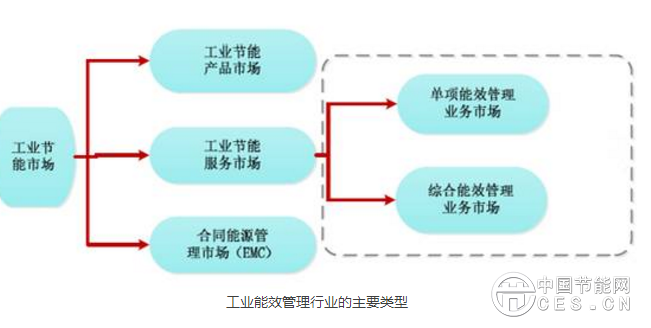 工業(yè)能效管理市場(chǎng)一般可分為工業(yè)節(jié)能產(chǎn)品/技術(shù)市場(chǎng)、工業(yè)節(jié)能服務(wù)市場(chǎng)和合同能源管理市場(chǎng)等三個(gè)子行業(yè)。