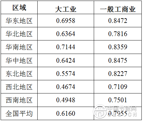 表:我國(guó)各區(qū)域現(xiàn)行銷售電價(jià)平均值(單位:元/kWh)