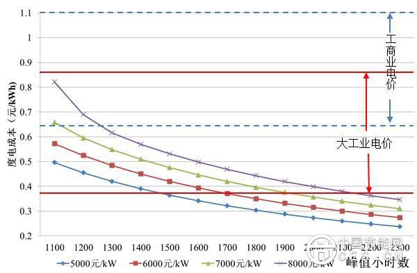 當(dāng)造價(jià)到達(dá)5000元/kW時(shí),幾乎大部分地區(qū)的度電成本都低于當(dāng)?shù)氐拇蠊I(yè)銷售電價(jià);在資源好的地區(qū)可以有一定利潤(rùn)。