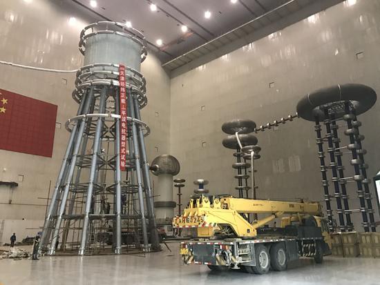 在天津南特高壓變電站,記者看到架構(gòu)最高處距離地面達到71米,仿佛一根根直沖云天的“擎天柱”。