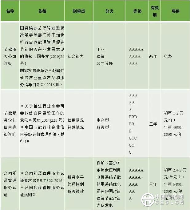 節(jié)能服務(wù)公司“資質(zhì)”對比一覽表