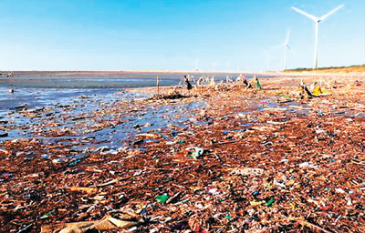 圖為臺灣西海岸海灘上的垃圾。資料圖片