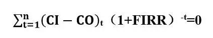 1. 財務(wù)內(nèi)部收益率(FIRR)系指能使項目計算期內(nèi)凈現(xiàn)金流量現(xiàn)值等于零時的折現(xiàn)率,即FIRR作為折現(xiàn)率使下式成立:
