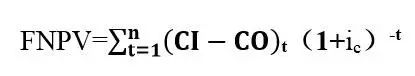 3.財務(wù)凈現(xiàn)值(FNPV)系指按設(shè)定的折現(xiàn)率(一般采用基準(zhǔn)收益率ic)計算的項目計算期內(nèi)凈現(xiàn)金流量的現(xiàn)值之和,可按下式計算: