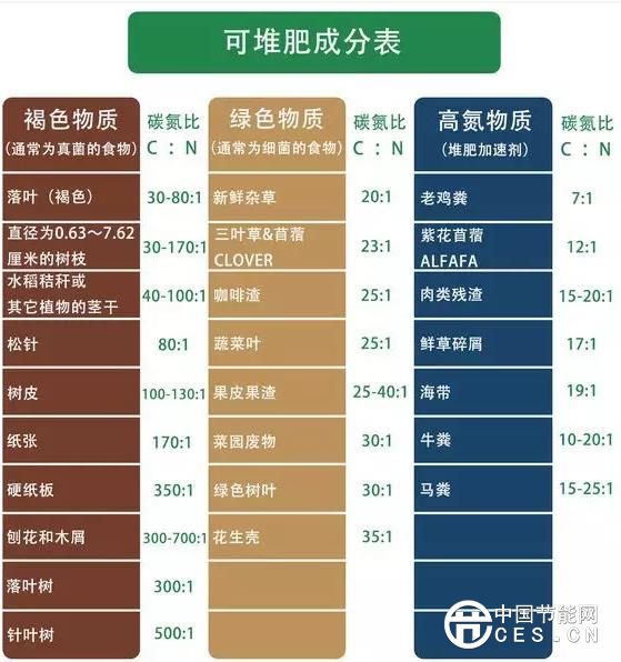 堆肥的原料包含褐色物質(zhì)、綠色物質(zhì)和高氮物質(zhì)三種。