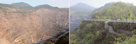 因地制宜,巧妙設計,如今這個廢棄的采石場被打造成了面積超過22萬平方米的大型山地景觀公園,“兩潭、兩島、一瀑、一谷、一云梯”七大主體景觀,每天吸引著眾多游客。它不僅成為全國首座宕口遺址公園、“變廢為景”的典范,還被國土資源部確定為城市礦山治理樣板工程。