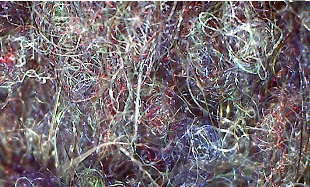 洗衣機(jī)排出廢水中的塑料纖維 (圖片據(jù)英國衛(wèi)報(bào))