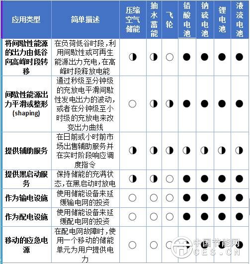 表2不同儲(chǔ)能技術(shù)適合的應(yīng)用類型