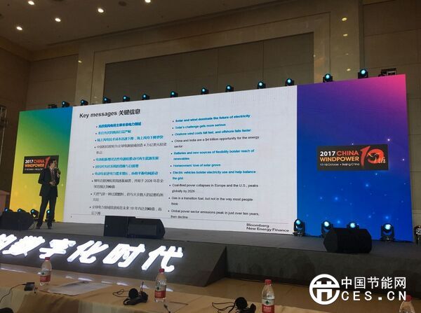 2017年10月16日-19日,2017北京國(guó)際風(fēng)能大會(huì)(CWP2017)在北京隆重召開(kāi)。在中國(guó)國(guó)際展覽中心(新館)“全球風(fēng)電 CTO 論壇——未來(lái)風(fēng)電暢想”,彭博新能源財(cái)經(jīng)全球風(fēng)電研究主管 David Hostert就“全球能源十大趨勢(shì)及對(duì)風(fēng)電影響研究”議題進(jìn)行分享。重點(diǎn)介紹了陸上風(fēng)電成本下降、風(fēng)電聯(lián)網(wǎng)以及儲(chǔ)能的重要作用等6點(diǎn)趨勢(shì),以及對(duì)風(fēng)電產(chǎn)業(yè)的影響。