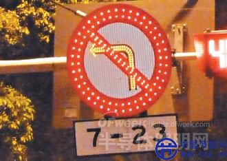 因LED燈直接附著在標志上,像“禁止左轉(zhuǎn)”與“分道標志”原本的黑箭頭就貼上黃色LED燈,白天看還好,但晚上標志內(nèi)的指示箭頭,就會全部變成黃色,違反設(shè)置規(guī)定。