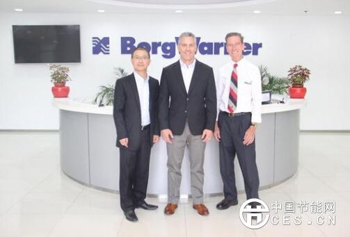 博格華納排放和熱能系統(tǒng)亞洲區(qū)副總裁兼總經(jīng)理Chris Lanker(左二),博格華納排放和熱能系統(tǒng)中國合資公司?華納圣龍(寧波)有限公司總經(jīng)理寧偉(左一)和博格華納排放和熱能技術(shù)顧問Gerard Light(左三)