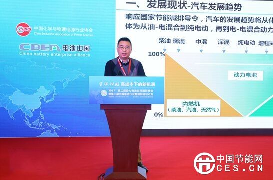 圖為國家電動客車電控與安全工程技術(shù)研究中心副主任、鄭州宇通客車股份有限公司新能源汽車技術(shù)總監(jiān)李飛強作主題演講