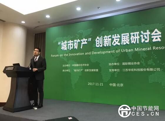 在2017中國國際循環(huán)經(jīng)濟展覽會暨2017中國循環(huán)經(jīng)濟發(fā)展論壇盛大召開之際,11月21日,由中國循環(huán)經(jīng)濟協(xié)會主辦,國際銅業(yè)協(xié)會協(xié)辦,江蘇華宏科技股份有限公司支持,“城市礦產(chǎn)”創(chuàng)新發(fā)展聯(lián)盟承辦的“城市礦產(chǎn)”創(chuàng)新發(fā)展研討會在京成功召開。來自再生資源循環(huán)利用企業(yè),“城市礦產(chǎn)”示范基地、產(chǎn)業(yè)園區(qū)以及再制造產(chǎn)業(yè)示范基地、園區(qū)和企業(yè),地方政府有關(guān)部門,科研機構(gòu),大專院校及行業(yè)協(xié)會的80余位代表參加了本次會議。