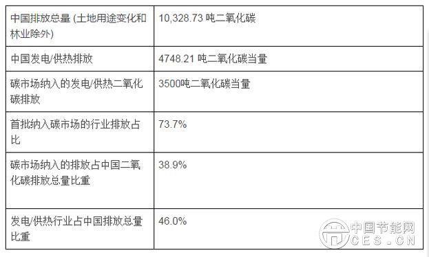 全國碳排放交易市場首批納入的發(fā)電/供熱行業(yè),其二氧化碳排放量占中國二氧化碳排放總量的46%(詳細(xì)數(shù)據(jù)請見文末表格)。中國碳論壇(ChinaCarbon Forum)稱,電力行業(yè)將被納入全國碳排放交易市場的二氧化碳排放總量預(yù)計為3500噸,占該行業(yè)排放總量的74%。由于該行業(yè)二氧化碳排放量在全國排放總量中占比較大,即便全國碳排放交易市場首批僅納入發(fā)電/供熱行業(yè),碳市場覆蓋的二氧化碳排放量將占到全國排放總量的39%。