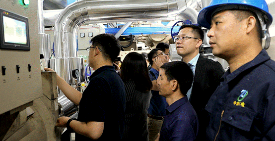 15點(diǎn)30分,嘉賓們走進(jìn)南京高速齒輪廠第4期項(xiàng)目,進(jìn)入中央空調(diào)機(jī)房進(jìn)行體驗(yàn)。在進(jìn)門右側(cè),海爾磁懸浮空調(diào)正在運(yùn)行,噪音儀器顯示數(shù)值80左右,不排除環(huán)境音。嘉賓們相互之間距離1米左右交流也無障礙,備用的無線耳機(jī)一直拎在手中,沒有派上用場。