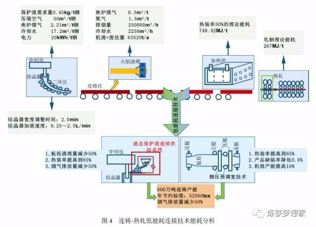 初步估算,如果年產600 萬噸連鑄坯,采用低能耗連接技術,節(jié)能量可達到5.256 萬tce/年,煙氣排放量(火焰清理工序)可降低50%。